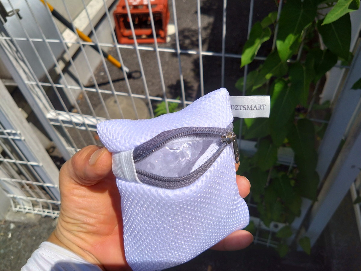 ただ、それだと氷が背中の方に移動したりすぐに溶けてしまったりするので、今日は氷入れを持ってきました。
