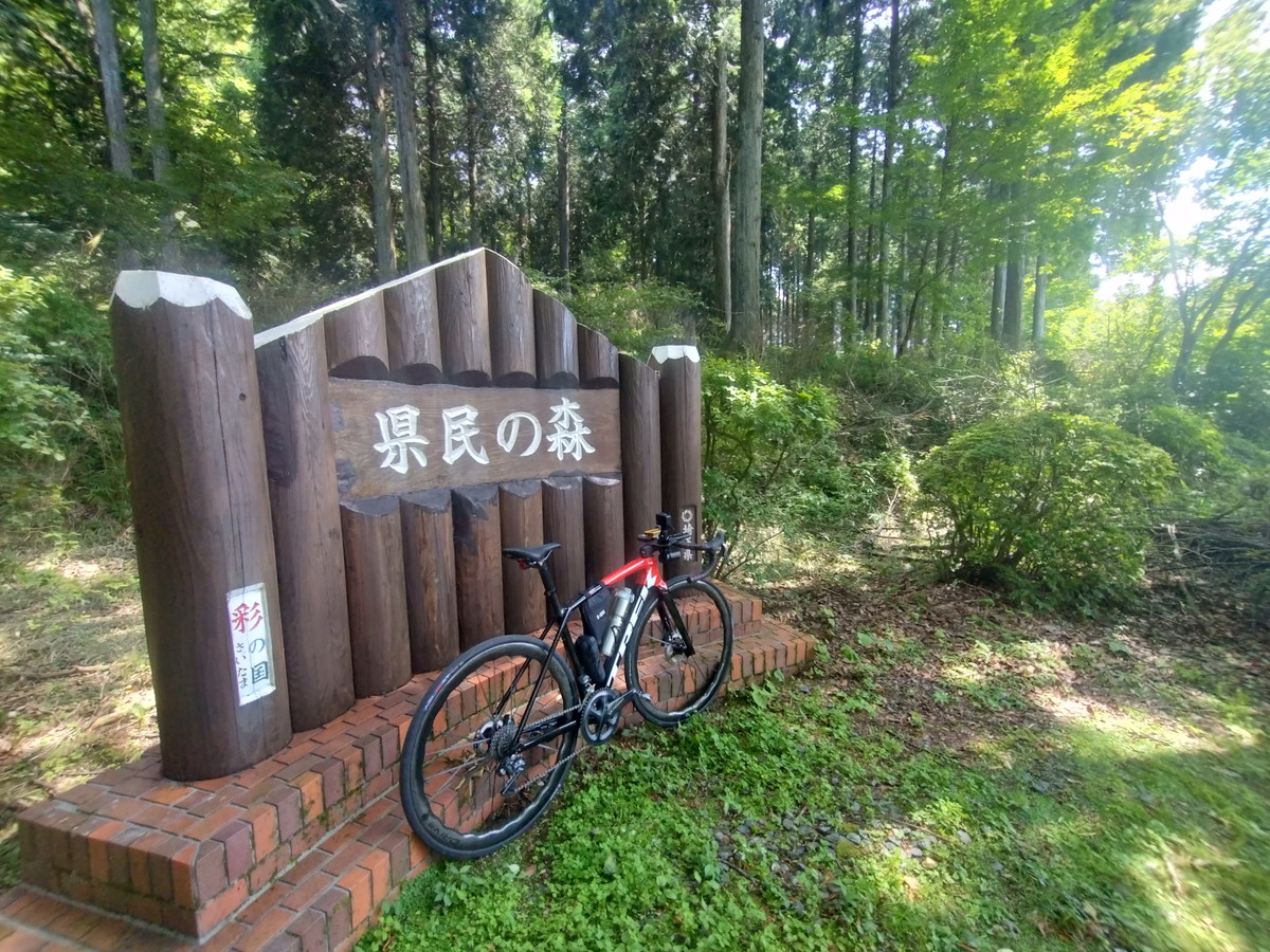 どこかに水飲み場が無いか看板を見たら、どうやら県民の森の中にありそうです。